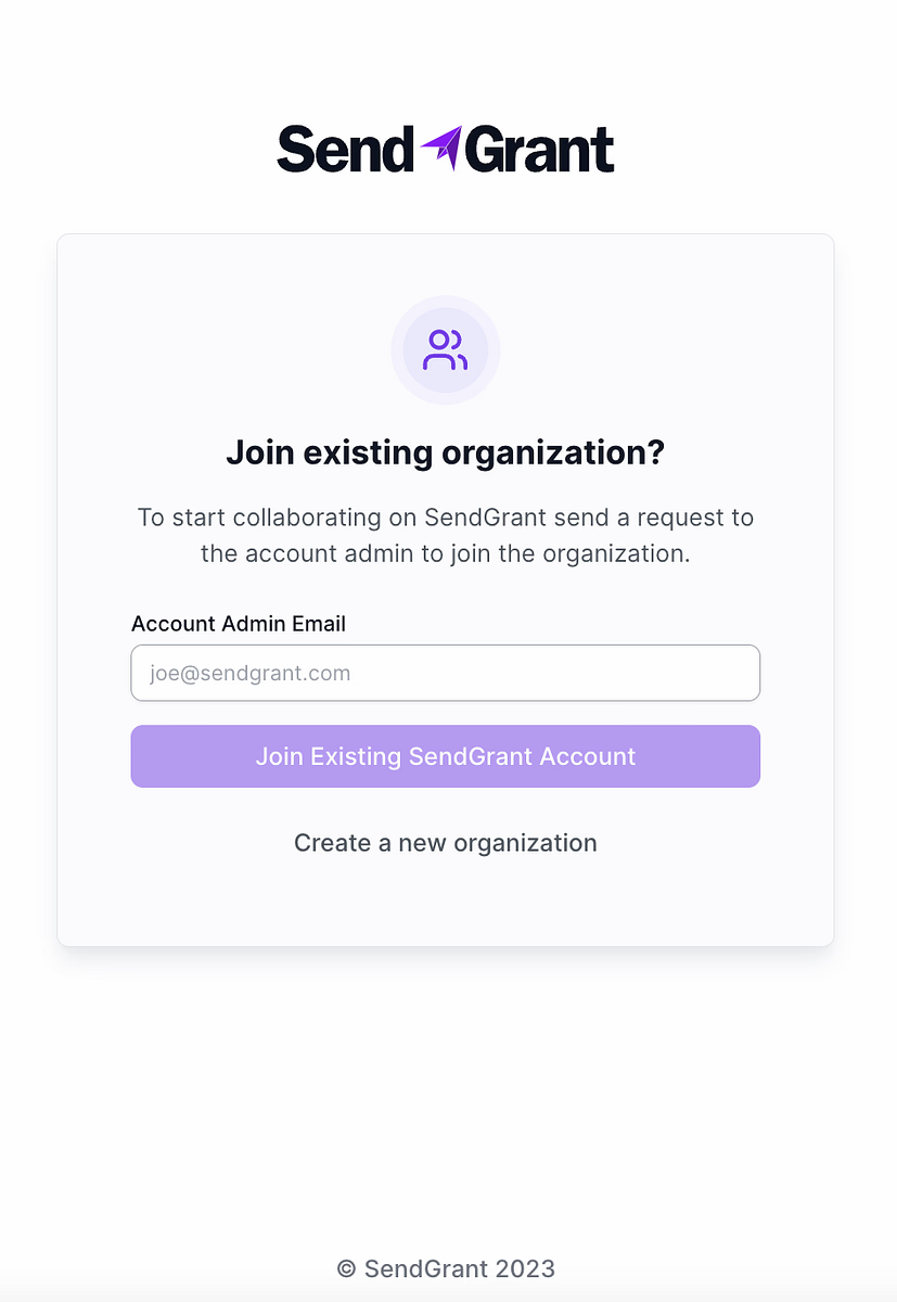 - If you're joining an existing organization: Enter the email of the account administrator to send a join request.
