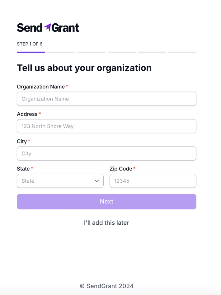 Welcome to SendGrant! Now it's time to set up your account so you can send scholarship and grant payments electronically.