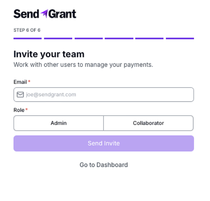 Once you've completed the onboarding process, you can access the dashboard and begin using SendGrant to its full potential.