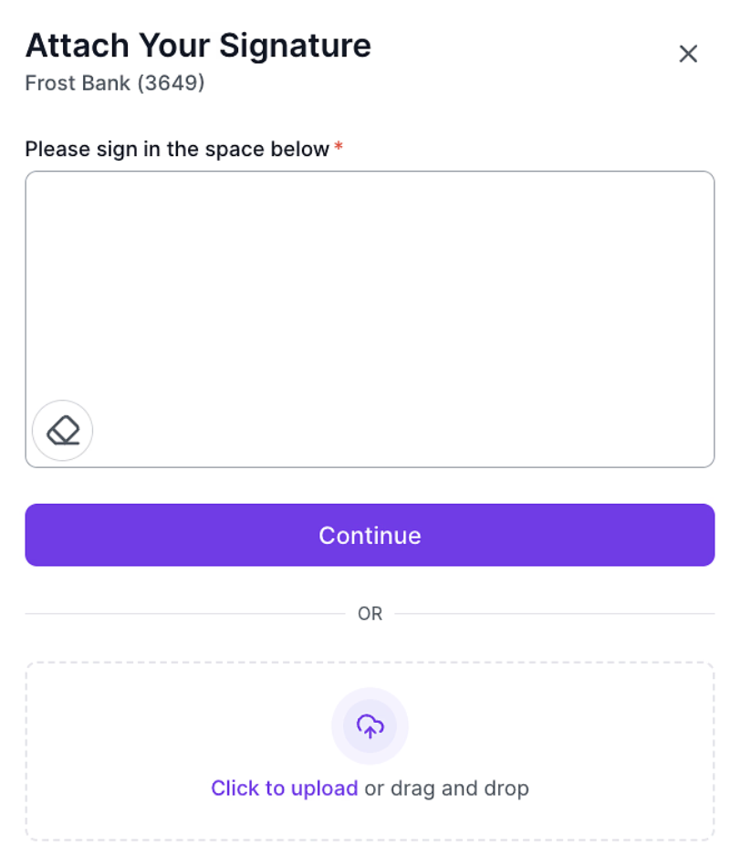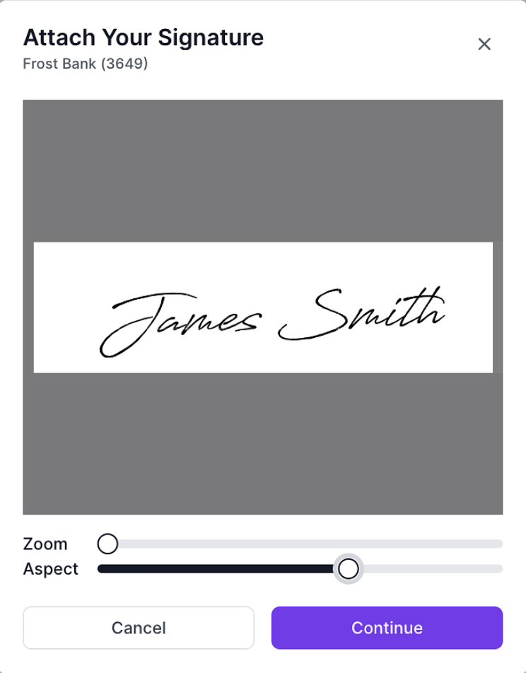 Then you will see the signature preview and click "Attach" to add the signature to the bank account.
