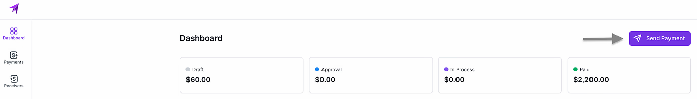 - Navigate to the 'Send Payment' feature from either the Dashboard or the Payments page.