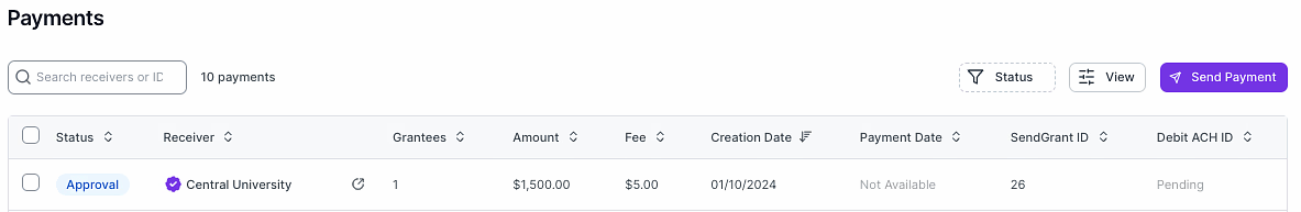 - Grantees and amounts will be grouped by the Receiver for easy organization.